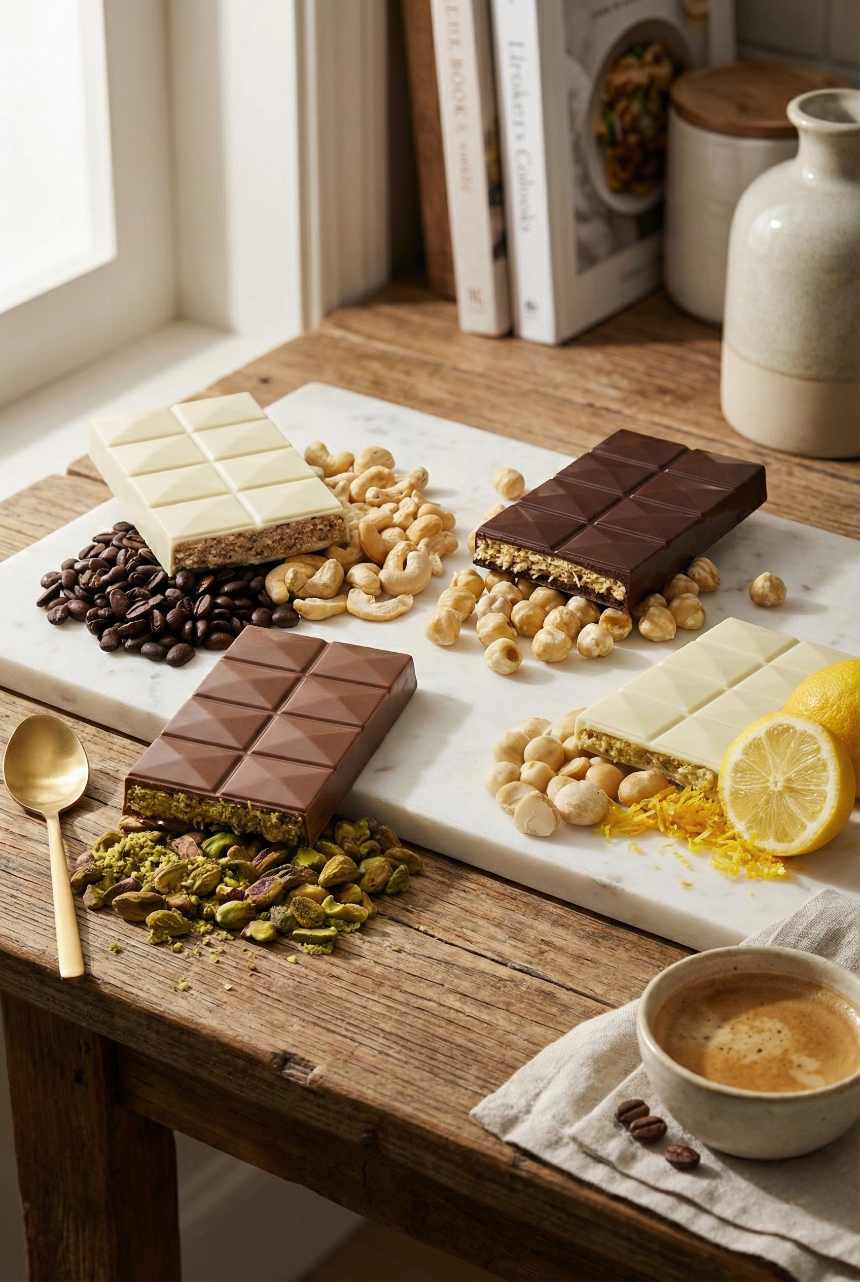 Enrobed in premium, sustainable Belgian chocolate for a flawless snap and velvety melt. We never compromise on our coating, ensuring every bite begins with pure, smooth luxury